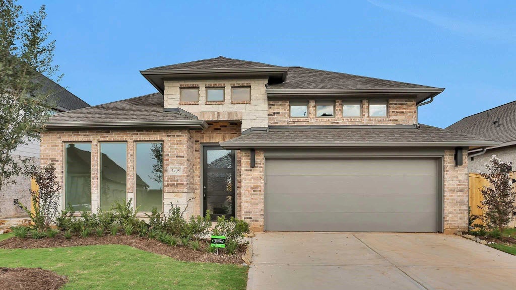 READY FOR MOVE-IN! Home office with French doors set at entry with 12-foot ceiling. Coffered extended entry leads to open family room, kitchen and dining area. Family room features wall of windows. Kitchen features corner walk-in pantry and generous island with built-in seating space. Primary bedroom highlights 12-foot ceiling and wall of windows. Double doors lead to primary bath with dual vanities, garden tub and separate glass-enclosed shower with separate walk-in closets. A guest suite with private bath adds to this one-story design. Covered backyard patio. Mud room off two-car garage.