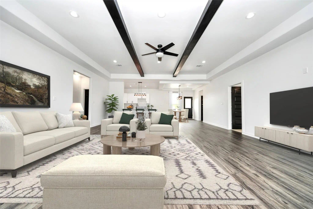 NO HOA. LOW TAXES. BRAND NEW BUILD. Step into a thoughtfully designed 3-bedroom, 2-bath home where style meets function. This home stands out with its soaring ceilings and an Texas sized living room made for entertaining or relaxing in comfort. The sleek, modern kitchen features crisp white cabinetry, bold black hardware, stainless steel appliances, a classic subway tile backsplash, and stunning white quartz countertops. The peninsula offers extra seating and a perfect view into the main living space, keeping everyone connected. The spacious primary suite offers a private retreat, complete with a walk-in closet and a beautifully finished en-suite bath. Secondary bedrooms are tucked away on the opposite side of the home, creating space and privacy for everyone. With generous front and back yards, there's room to dream—whether it's a trampoline, garden shed, or your future pool. Schedule a private showing with your agent today and come see what makes this home different.