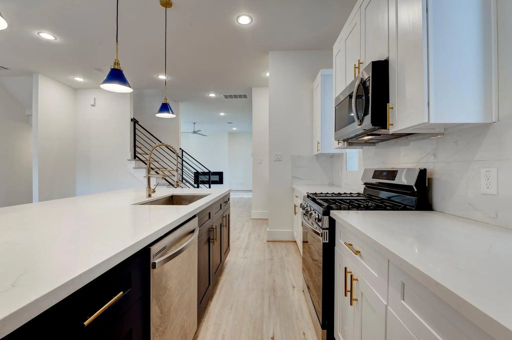Discover modern luxury in this exceptional 4-bedroom, 4.5-bath home built in 2022, perfectly located in the heart of Cottage Grove—with no HOA and not in a flood plain. This is the only home in the community with a straight backing driveway for easy access and added convenience. Step inside to an open-concept layout with soaring ceilings, a sleek electric fireplace, and oversized energy-efficient windows that flood the space with natural light. The chef’s kitchen features a massive quartz island, two-tone cabinetry, and premium Samsung appliances. The expansive primary suite offers a spa-like retreat with a freestanding tub, large shower, and custom walk-in closet. Enjoy outdoor living with a private balcony and an incredible rooftop terrace. No carpet, stylish vinyl plank flooring and solid oak stairs, this home blends elegance with everyday functionality—just minutes from Downtown, Memorial Park, white oak trail. Washer, dryer and refrigerator included.