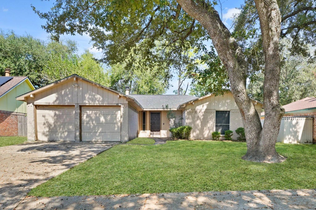 Charming 3-bedroom, 2-bath home with 1,833 sq ft of living space in an established neighborhood. Enjoy an open-concept layout featuring vaulted ceilings, a brick fireplace, and tile flooring throughout. The kitchen offers plenty of cabinet space, granite countertops, and a breakfast bar that opens to the living area. Spacious primary suite with dual sinks and a walk-in closet. Large secondary bedrooms ideal for guests or a home office. Mature trees provide shade to the fenced backyard, perfect for relaxing or entertaining. Convenient location near shopping, dining, and major highways.