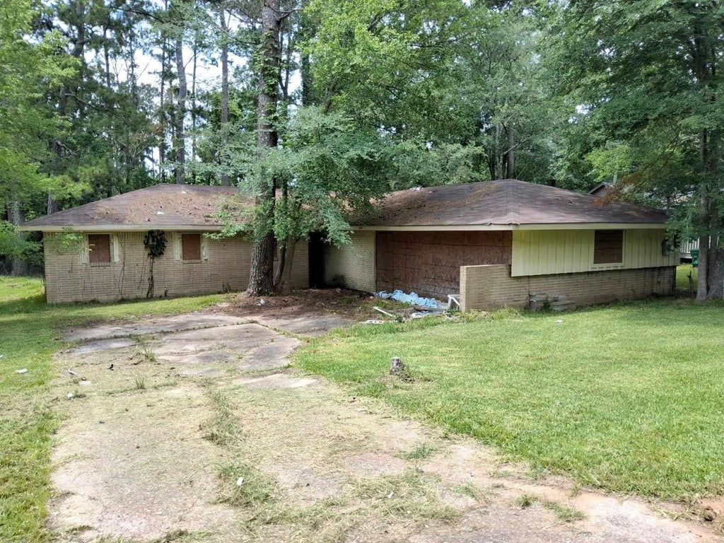 Bank Owned. This is a full rehab. The foundation looks ok, and there is a slab on the back about 17 x 23 that is encroaching on 933 Shore Shadow and needs to be removed. 933 Shore Shadow is also for sale. The trim is all damaged and the siding is missing in places so that will need Hardie installed. The whole exterior needs paint. Roof seems okay. Inside everything is gutted. No floors no cabinets no lights no paint. All rooms are just studs right now. There is a utility room 8 by 8, and a garage 19 by 22 but they are just empty frames.