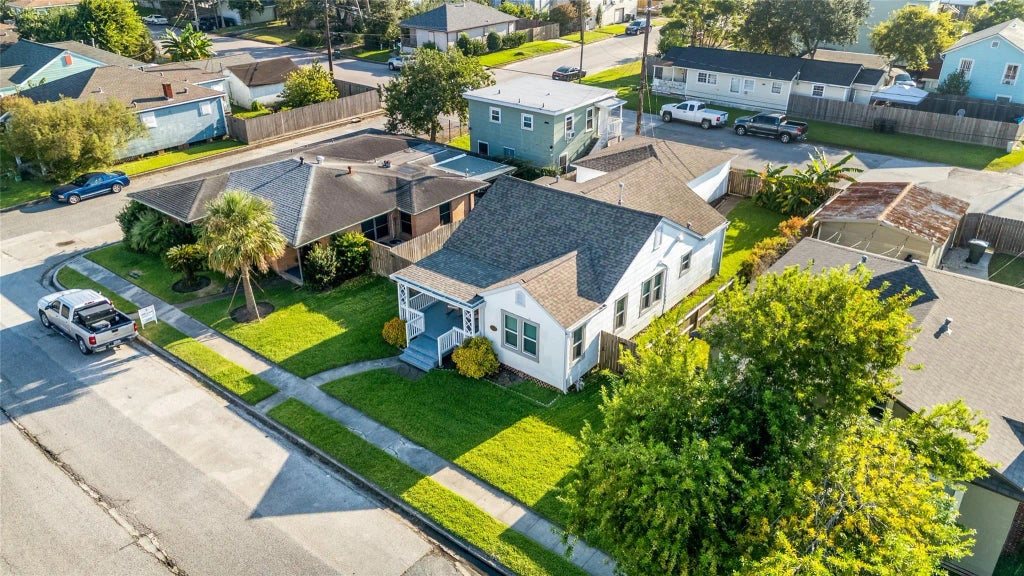 Welcome to this charming 2-bedroom, 2-bath home with a 2-car garage, offering classic Galveston charm and modern comfort. A large front porch sets the tone for relaxing mornings or evenings with friends. Inside, a well-organized floor plan highlights beautiful hardwood floors, natural light, and flexible living spaces. The living room flows into a versatile area ideal for dining, a home office, or a cozy reading nook. The spacious kitchen features ample cabinetry, counter space, a subway-tile backsplash, and a center island perfect for cooking or casual meals. The primary suite offers privacy with access to a small deck, while the secondary bedroom and two full baths add convenience. Enjoy a fenced backyard for pets or gatherings plus a 2-car garage for parking and storage. Move-in ready and priced to sell, this home is ideal as a primary residence, vacation retreat, or investment property. Schedule your private tour today!