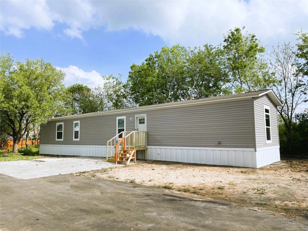 Welcome to your new home! This cute and cozy 3-bedroom, 2-bath manufactured home boasts upgrades and a spacious layout. Enjoy plenty of natural light and modern vinyl wood flooring. Outside, there's ample yard space for entertaining and a cozy fire pit. Refrigerator, washer & dryer are included for added convenience. Water, trash, and lawn/yard maintenance included for additional $100 per month. Conveniently located in Pearland near major highways. Don't miss out on this fantastic opportunity! Schedule your showing today!