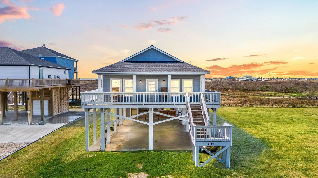 **20% down 7.875% 2 years**Paradise awaits in this stunning beachfront retreat with direct Gulf access! Whether you're searching for the perfect investment property or a dream vacation getaway, this stilted coastal gem offers it all. Enjoy breathtaking ocean views from the wraparound balcony, where you can sip your morning coffee or unwind at sunset with the sea breeze. The bright, open interior boasts soaring ceilings, abundant natural light, and stylish vinyl plank flooring. A seamless living, dining, and kitchen layout makes entertaining a breeze, with granite countertops, stainless steel appliances, and a spacious island with bar seating. The owner’s suite features French doors leading to a private balcony, plus an en-suite bath with dual sinks. Three additional bedrooms offer plenty of space for guests, and best of all—this home comes fully furnished! Don't miss this rare opportunity to own a piece of paradise!