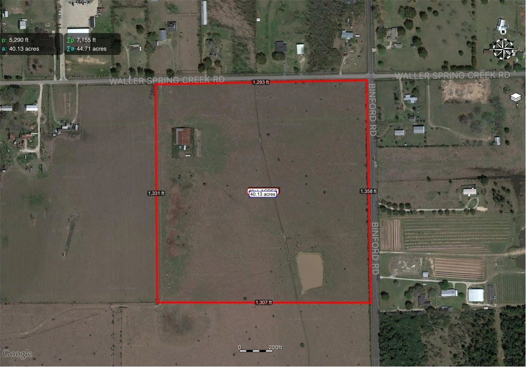 An excellent opportunity for industrial or multifamily development in Houston’s rapidly growing NW Corridor. This UNRESTRICTED 40+/- Acres has frontage to the hard corner of Binford and Waller Spring Creek roads. Access to City of Waller Utilities nearby. Property has nearly 1,300 feet of frontage on both roads. This tract currently has an agricultural tax exemption for cattle grazing. There is an approximately 80’x100’ hay barn, a pond for livestock, and the property is fenced on three sides.