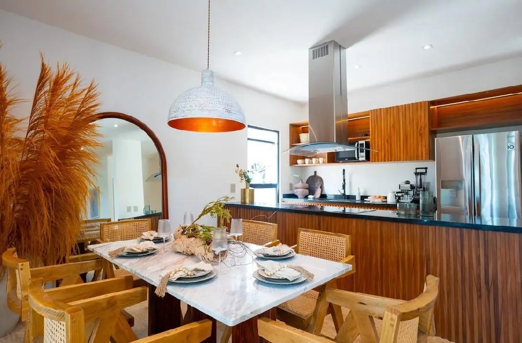 Discover elevated living in this stunning 2-bedroom, 2-bathroom condo located in Baikal inside the prestigious Tulum Country Club. Designed with a seamless open-concept layout, this elegant residence features a spacious kitchen, dining and living area that flows into your private Jacuzzi and balcony overlooking the golf course, creating a serene backdrop for both relaxation and entertaining. Wake up surrounded by tropical beauty, soak in the sun on your balcony, and enjoy the privacy and tranquility that come with luxury resort-style living. Residents enjoy an exceptional collection of amenities, including pools, outdoor fireplaces, sky lounges, a fully equipped gym, co-working spaces, and more. Whether you're seeking a serene retreat, a stylish full-time residence, or a high-performing investment in one of the Riviera Maya’s most sought-after gated communities, this condo offers the perfect blend of natural elegance, upscale comfort, and the vibrant Tulum Beach just minutes away.