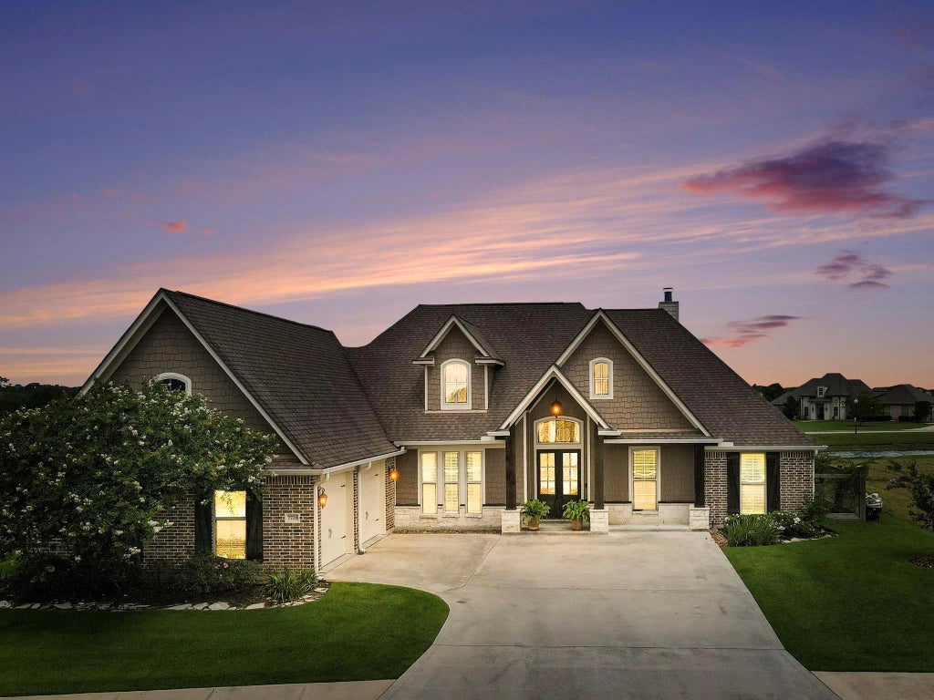 Welcome to this stunning custom-built by Aulbaugh Construction, Acadian style home located in the gated community of the Crescent on Walden. This home truly exemplifies custom elegance and serene living. This exceptional home features a gourmet kitchen with custom cabinetry, double oven, gas stove with gleaming granite countertops throughout. The spacious living room, complete with a cozy fireplace, adds to the inviting atmosphere. You will appreciate the sophisticated touches of the tray ceilings accented with elegant crown molding, adding architectural interest to the living spaces. Primary bedroom offers a spacious sitting area, large walk-in closet that flows into the laundry room for convenance while the primary bath provides a luxurious escape with its double vanity, tile shower and relaxing spa tub. Let's not forget the covered back porch feature's a stained, vaulted wood ceiling and a cozy fireplace, offering a picturesque retreat that overlooks a tranquil lake area.