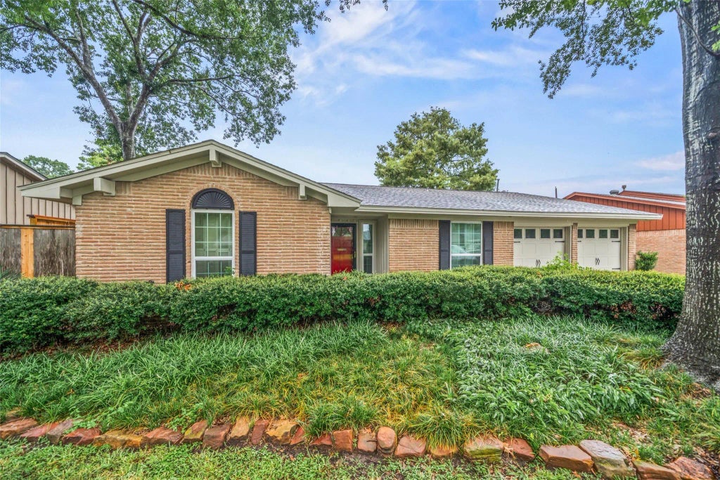 Charming and thoughtfully updated one-story in Northwest Houston, featuring flexible living spaces and quality improvements throughout. The open-concept den offers vaulted ceilings, real wood floors, a skylight, built-ins, dual ceiling fans, and a stately faux fireplace. The remodeled kitchen is equipped with custom cabinets, granite countertops, a tile backsplash, a gas LG range, and a stainless-steel refrigerator. Both bathrooms have been fully renovated, and the oversized primary suite includes a spacious closet. Upgrades include a 2020 water heater, PEX plumbing, newer thermostat, gutters, and a sprinkler system. The large covered back patio features tile flooring, recessed lighting, and a ceiling fan—ideal for entertaining. The backyard is fully fenced with mature landscaping and a producing fig tree. Brick flooring in select areas, updated windows, and classic curb appeal complete this move-in-ready home.
