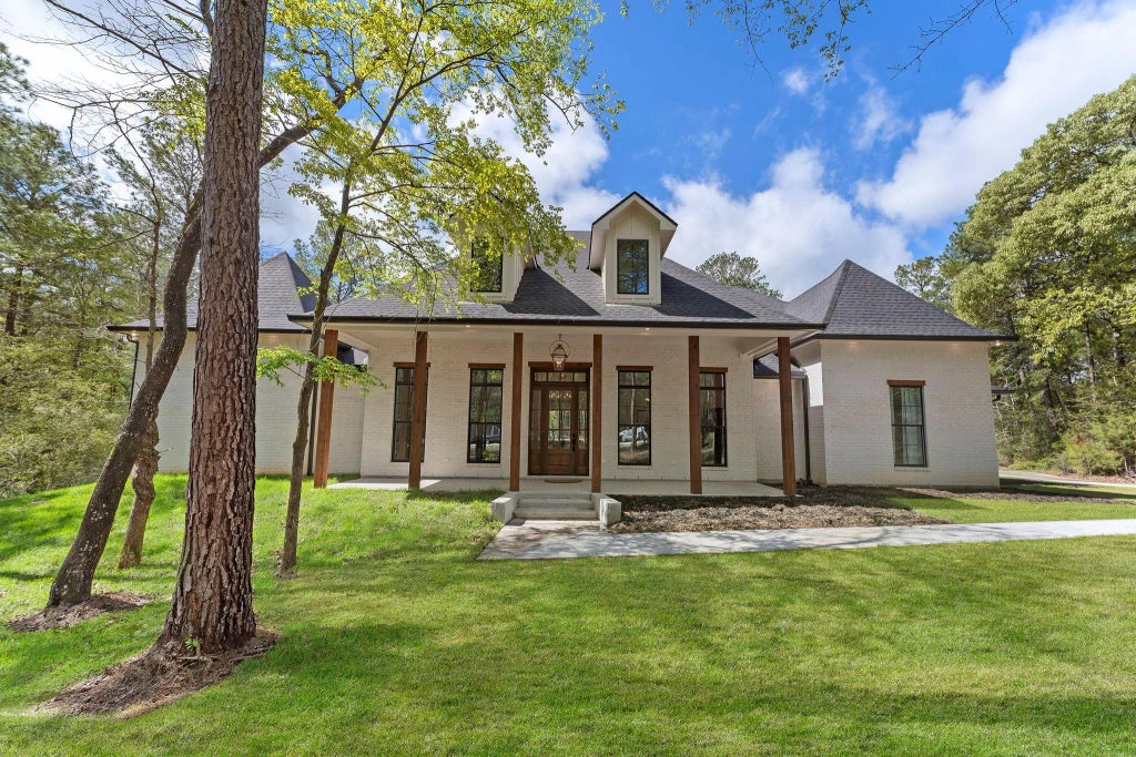 Ellegant French farmhouse serenely located 2.49 acres of wooded acreage. Lots of thought taken into all the beautiful details of this home, down to hardware on the cabinets. Spacious front porch, with inviting entry, to your right is a study w/French doors. Welcoming open concept with kitchen open to living room & dining. Property has vinyl plank floor throughout, NO carpet! Kitchen features quartz countertops, 6 burner professiona gas range w/double oven & griddle. TONS of cabinetry, soft close doors & drawers, pot filler, Walk-in pantry w/pocket door. Primary bedroom w/spa like bathroom, double sinks, vanity, free standing tub & shower w/3 shower heads. Walk in closet with island, storage!! Secondary bedroom with en-suite bath. 3rd & 4th bedrooms share additional bathroom. Energy efficient w/spray foam insulation, tankless water heater. HUGE covered patio w/fireplace & additional 1/2 bath. Prewired for future barn, pre-plumbed for outdoor kitchen. Whole house wired for cameras.