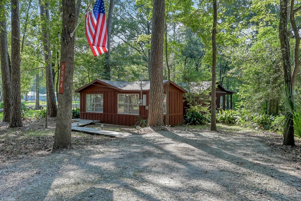 Discover this charming 2-bedroom, 1-bath home nestled in a peaceful wooded area on Lake Bonanza and located in highly sought after Montgomery ISD (Lake Creek High School). Enjoy tile floors throughout for easy maintenance, with a bright and airy interior filled with natural light. The open kitchen and dining combo offers ample cabinet space, perfect for entertaining. The utility room adds convenience, while the covered back patio provides stunning views of the lake—ideal for relaxing or outdoor gatherings. Embrace lakeside living in this cozy retreat surrounded by nature.