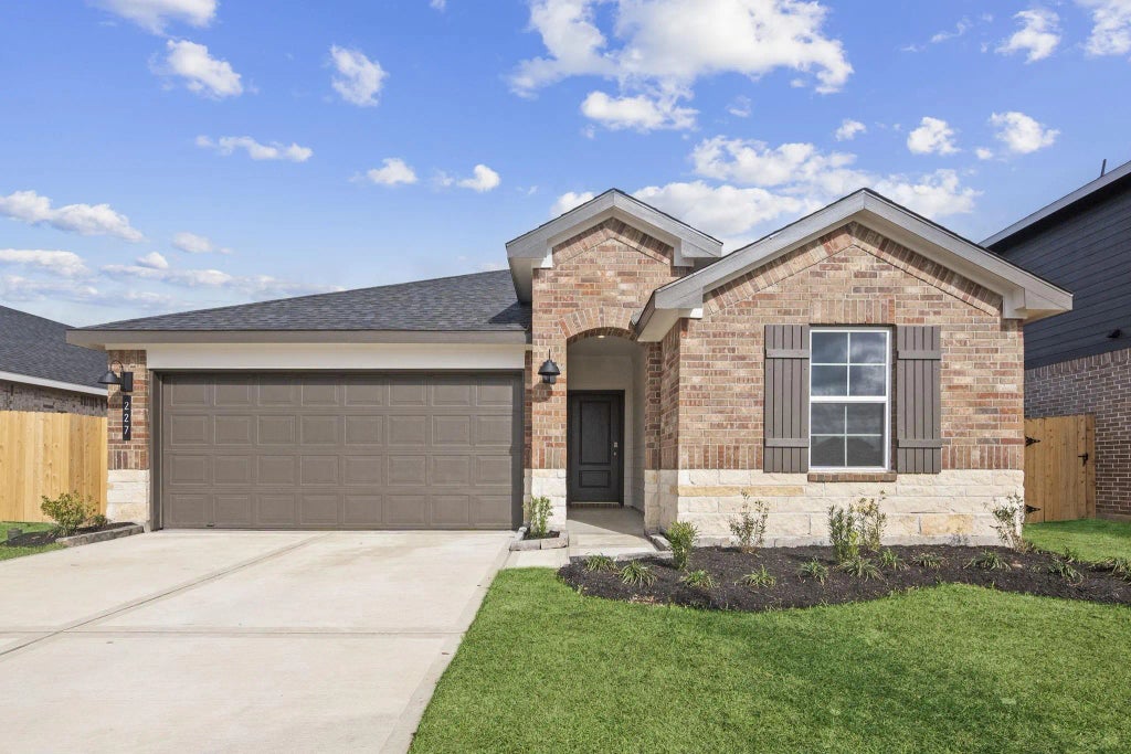 The Easton is a spacious, one-story home with 1,680 sq. ft. of living space! It features 4 bedrooms, 2 bathrooms, and a 2-car garage, perfect for families or those who love to entertain. The foyer leads to three flexible secondary bedrooms at the front, ideal for guests, a home office, or a playroom, with a nearby bathroom. At the heart of the home, the open-concept kitchen, dining, and family room create an inviting space, with the kitchen offering a large island, pantry, and plenty of counter space. The private primary suite at the back includes an ensuite with dual sinks, a walk-in shower or optional soaking tub, and a huge walk-in closet. A covered patio extends the living space outdoors—perfect for relaxing or entertaining. The Easton combines comfort, style, and functionality!