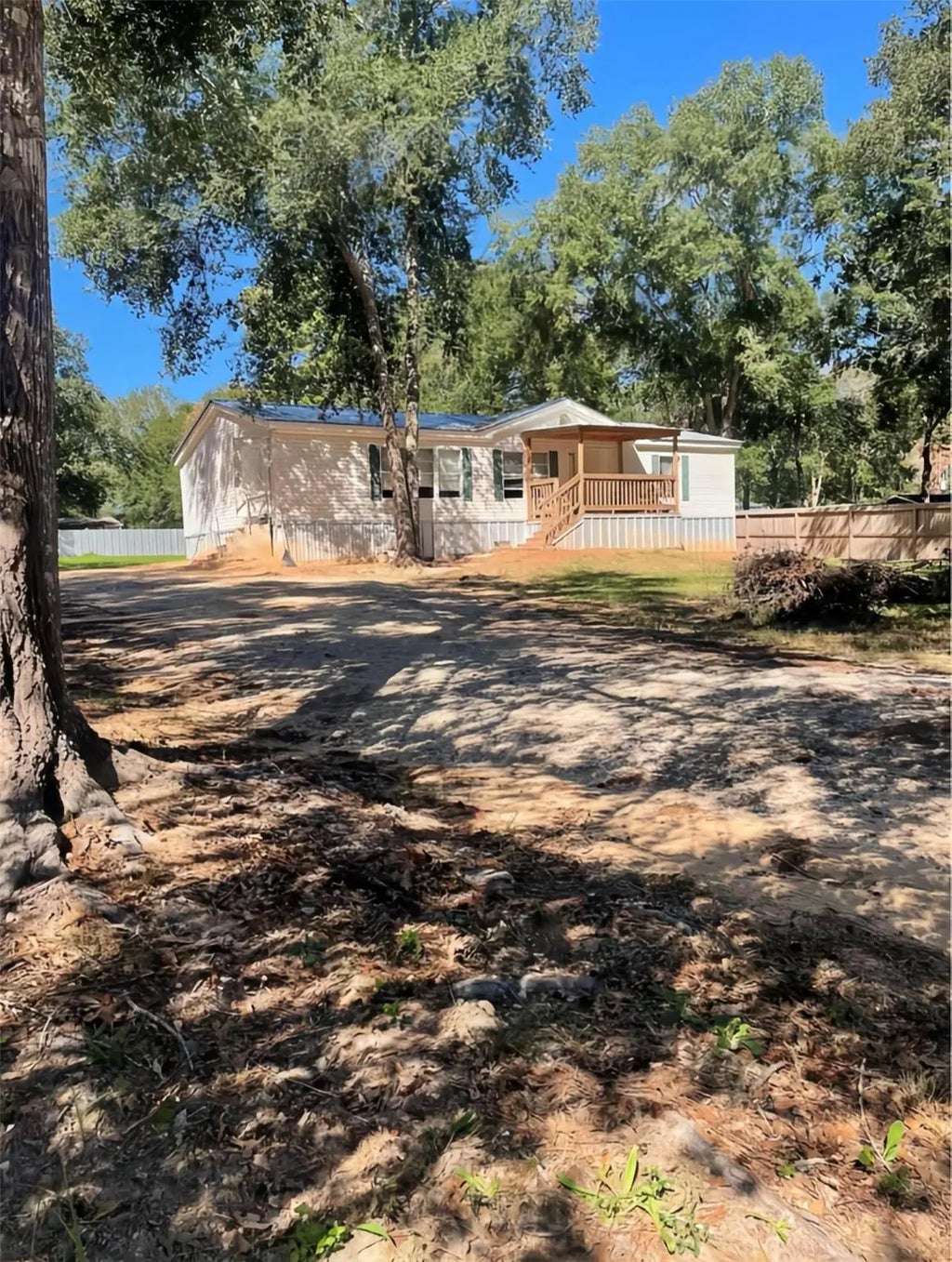 Welcome to Hairston Dr in Willis, TX! This charming 3-bedroom, 2-bath mobile home sits on a spacious ½-acre lot in an unrestricted neighborhood—offering privacy, flexibility, and room to grow. Inside, you'll find plenty of natural light. Step outside to enjoy the extended back porch, high privacy fencing, and a separate fenced area perfect for pets or small animals. The cleared lot provides ample space for entertaining, parking, or future projects—dead end street gives extra quiet and peace. With no HOA or restrictions, you’re free to bring your RV, boat, or animals and truly make this property your own. Whether you’re looking for a move-in-ready home or a future homesite to build your dream home, the possibilities are endless. Located just minutes from Lake Conroe and the rapidly growing Willis area, this property blends country living with convenient access to shopping, dining, and recreation.