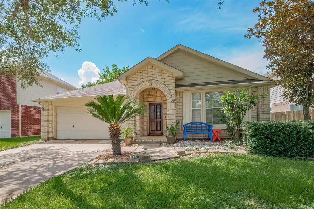 MUST SEE this charming, freshly painted home offering 2,131 sq ft of versatile living space, including a fully finished 187 sq ft sunroom (heated, cooled, with ceiling fans, TV, and patio set!). This spacious layout also features a large family room, dining area, and bonus room perfect for a study or formal living. Beautiful wood laminate flooring throughout and zoned to top-rated Fort Bend ISD schools. Select FURNISHINGS INCLUDED !!!: sunroom patio set, dining set with china cabinet, 2 TVs, 2 refrigerators, washer/dryer—plus anything in the garage (landlord will remove what’s not needed). Just 1 minute to Hwy 6 for easy commuting. Enjoy nearby restaurants, shopping, and access to the community pool. Ready for Immediate move-in!