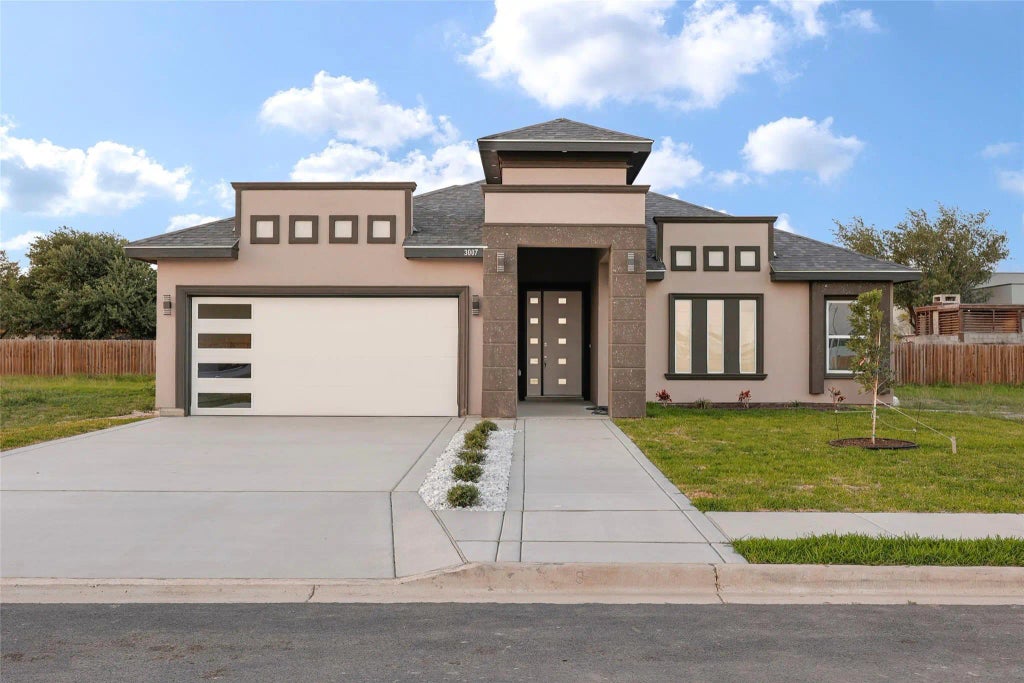 4-bed, 2.5-bath in a secure gated community. This open-concept layout features energy-efficient double-pane windows plus a custom builder-designed lighting plan, enhancing both security and modern functionality. Enjoy quartz countertops in the kitchen and all bathrooms, porcelain tile, and the latest interior paint trends. A half bath is ideally placed to serve both the living area and the primary covered patios—ideal for entertaining. The second private patio, located off the laundry room, is great for exercising, reading, or relaxing with your favorite drink. Thoughtful upgrades include custom-built-in cabinetry with lighting, Italian-inspired decorative high ceilings, and exterior lighting. Designed with comfort and style in mind, this home blends functionality with elegant details, offering a peaceful and modern retreat in one of Hidalgo’s most convenient locations. The yard offers just the right amount of space to enjoy without the hassle of high maintenance. Schedule a showing.