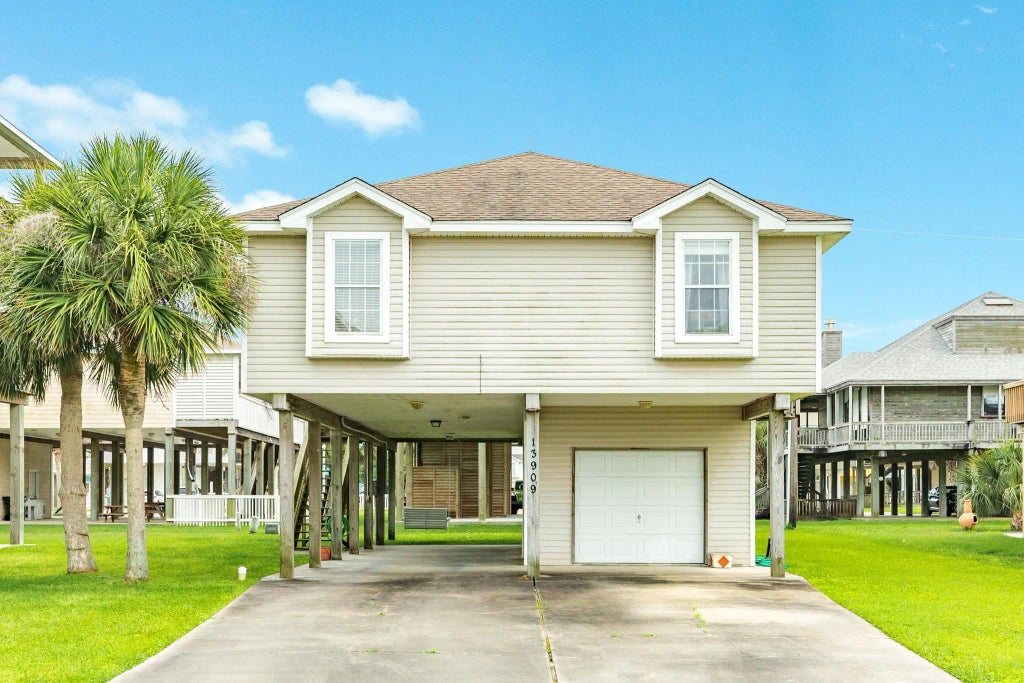 Welcome to Pirates Beach! This charming 2-bedroom, 2-bath beach house features a spacious vaulted family room and a covered back deck perfect for relaxing after a day in the sun. The attached garage fits a car or golf cart, plus all your beach gear. Hop in the cart for a quick ride to the beach or explore nearby parks, boating, fishing, and dining. A mandatory social membership to the Galveston Country Club is included, offering access to a private pool, tennis courts, and a members-only restaurant. Current dues are $117 per month.