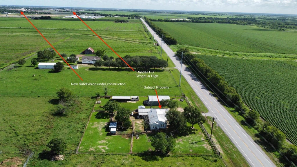 COMMERCIAL Opportunity with residential option as an investment hold until future plans are made or use a rental property for an instant income producing property. This acreage parcel has frontage on FM 2977 (Minonite Rd) which is exploding with both Commercial and Residential developments from Rosenberg to Needville consisting of new Lamar Consolidated Schools and numerous tract home developments within a few feet from this property. The home has 3 full bedrooms/2 full bath, 1 extra room, original wood floors, 2 car oversized garage, a 2 car carport, dog kennels, and a large shop. The property is fenced and has quick, easy access to all major freeways. **No drive up showings**