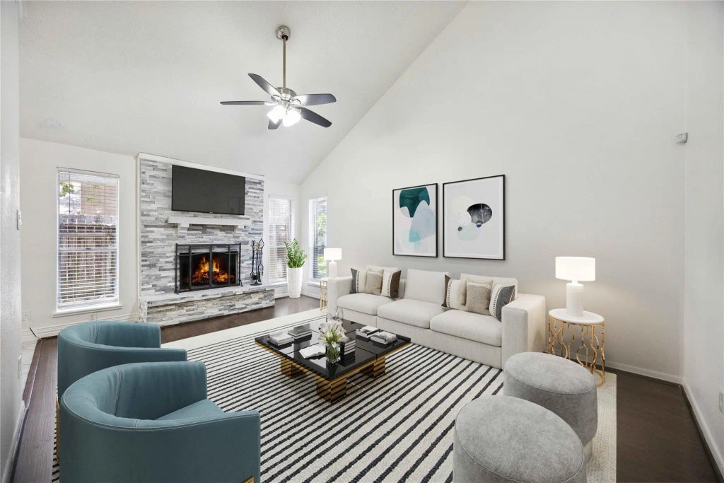Tucked away in the tree-lined community of Westhollow Villas, this inviting 3-bedroom, 2-bathroom townhome offers style, comfort, and convenience. The modern interior features tile and laminate flooring throughout the main living and kitchen areas, accented by updated light fixtures for an elegant touch. The chef-inspired kitchen boasts stainless steel appliances, granite countertops, and a spacious dining area with views of the charming patio. The living room impresses with soaring ceilings, abundant natural light, and a stunning stacked stone fireplace—perfect for cozy evenings at home. The primary suite is thoughtfully located on the first floor, providing privacy and ease of access. Ideally situated with quick access to Westpark Tollway, HWY 6, and Beltway 8, this home blends tranquility with city convenience.