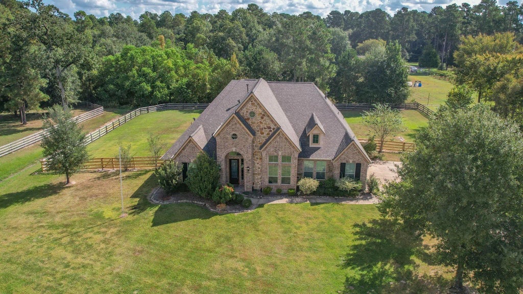 Stunning 1-story custom home situated on a HUGE *1* acre lot, backing up to private property used as a winery across the road from Spring Creek Growers (Christmas Tree farm!), and across the street from community vacant property (no neighbors!). NEW roof, carpet, & repaired fence (10/25). This home boasts generously sized rooms, fantastic for entertaining or just living large! Media room; home/office w/ French doors; formal dining; epicurean kitchen w/ island, loads of cabinetry & counter space; massive den/family room w/ stone fireplace; private owners' suite w/ a grand sized bedroom, executive bathroom featuring an over-sized shower w/ modest seat, whirlpool tub,2 vanities, & 12x10 well designed closet which maximizes space & storage. Upgraded engineered wood flooring, tile, & NEW carpet. Soaring ceilings! Sprinkler system, fencing, & a *3* car garage! Located in Montgomery County, and Tomball ISD, this community is small & intimate w/ only 50 lots AND check out this LOW tax rate!