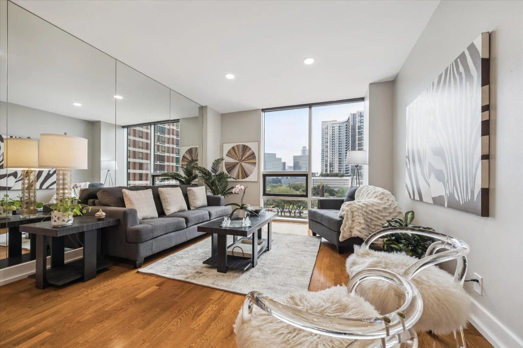 This is an ideal property to use as a primary residence, a turnkey pied-a-terre or an investment opportunity. The apartment faces South and has views of the Galleria. Hardwoods are in the living area, and carpet is in the bedroom. The kitchen and baths have been updated. There are remote controlled Hunter Douglas light filtering shades on the windows as well as a RO water system, LG ventless stacked washer/dryer, and Bosch dishwasher. This luxury building is full service. Situated on 9.5 acres it is gated and has valet, doorman, concierge and porter services 24/7. The property includes a gym, sauna, heated pool, tennis, pickleball courts, party room, lounge, picnic area with grills and more.
