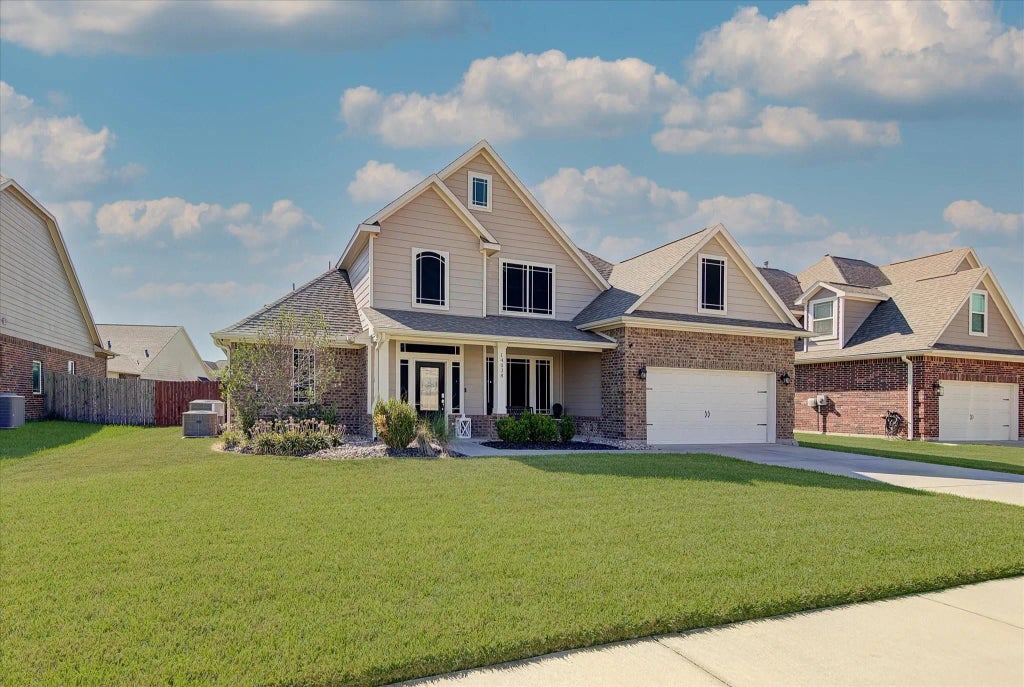 Welcome home to this GORGEOUS two story home in Lakes of Champions in the highly sought after Barbers Hill School District. This beautiful home has 4 bedrooms ( 2 on bottom ) and 3 full bathrooms, plus a flex room upstairs that can be used as an office, game room, media room, man cave, or craft room! It ALSO has another enclosed with ac storage room for all your decorations to decorate your new beautiful home! The large kitchen is open to the family room with huge high ceilings. This home has beautiful upgraded light fixtures throughout and is very well maintained! The backyard has a countersunk pool with a beautiful gated deck. Excellent location, near all the schools, grocery stores, restaurants, gas stations and more! Book your showing today! Professional pics coming soon - Open House Friday 11-1pm