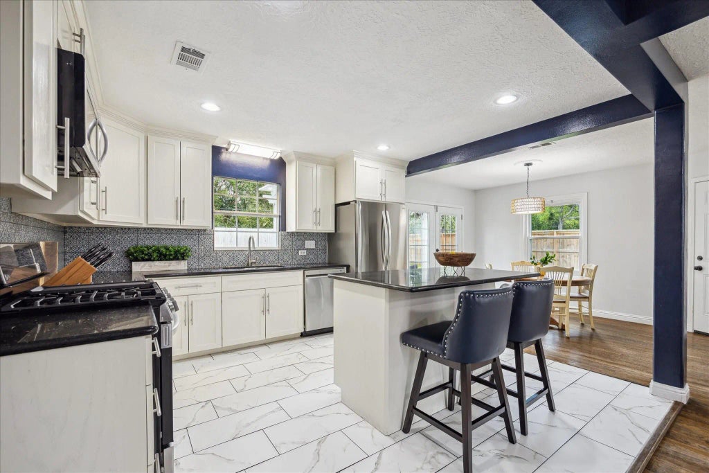 Timeless charm pairs w/contempory design in this totally remodeled gem w/3 FULL baths on an enormous lot in the highly sought after Spring Branch area. All costly items have been replaced: electrical panel (upgraded to 125 amp w/new meter), underground gas line, fencing, HVAC (upgraded full attic ductwork & exhaust fans), PEX plumbing, sewer line & fiberglass blown in insulation (2022-2024).Tastefully updated throughout featuring an island kitchen that opens to the dining & family rooms. Stainless steel appliances include a gas range & a refrigerator, washer & dryer that will convey. Garage was coverted to a primary wing, replete w/a space saving Murphy Bed & copious storage, affording a desirable split floor plan w/1900+ sqft of living space. Colossal lot (11,790 sqft), w/dual storage sheds, for building a garage or whatever your heart desires. Excellent location,just 5 minutes to Memorial City Mall and City Centre. Esteemed SBISD schools. Never flooded. Don't miss this opportunity.
