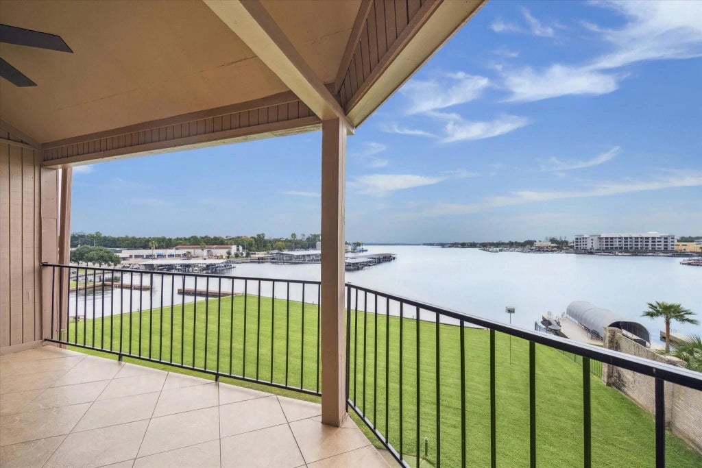 Freshly painted throughout with new ceiling fans, under-cabinet lighting, and upgraded LED fixtures, this bright and airy home includes a full-sized washer and dryer. Double-paned sliding doors open to patios off both the primary suite and main living area, offering double balconies with panoramic views of Lake Conroe. Enjoy the privacy and extra light of a corner end unit with deep water access in the sought-after, gated April Harbor community. Easy elevator access, temporary boat docks, and short-term boat parking make waterfront living effortless. Residents also enjoy fishing spots and a private pier. Conveniently located near Waterpoint Shopping Center, restaurants, shops, and Hwy 105, this home is perfect for weekend getaways or full-time lake living The HOA includes access to the pool, exterior maintenance, water, sewer, and limited-access gates. Assigned parking is included. Schedule your showing today to experience the gorgeous views and beautifully maintained interiors!