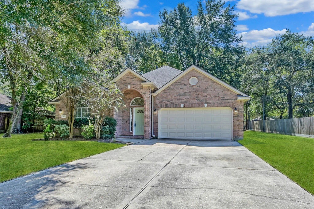 Wow! Located in the highly sought after neighborhood of Westwood in Magnolia TX is a spacious single story 3 bedroom 2 bathroom home sure to impress. Upon entering the home you will notice a modern and open floor-plan with tall ceilings, hard flooring throughout (no carpet), a cozy fireplace, large chefs kitchen with granite counter tops, extensive cabinetry and stainless steel appliances, oversized bedrooms, large light inviting windows and so much more! The primary bedroom is attached to a tranquil ensuite featuring dual sinks, a jetted soaking sub, separate walk-in shower and walk-in closet! Sitting on a large lot (almost 20,000 sqft) and overseen by a spacious covered porch allows for the perfect place to host a bbq or any large gathering. Located close to all shopping, major roadways and etc you cannot ask for more with its low tax rate! The home is also outfitted with a generator and plug. The neighborhood features extensive wildlife, a pool, basketball and tennis courts.