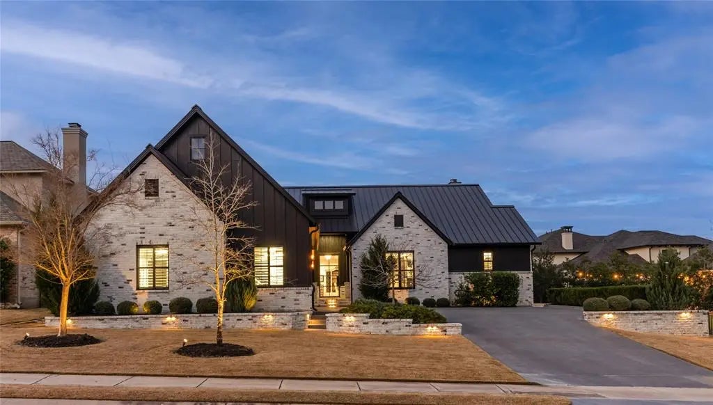 Discover luxury living in this custom home by Mariott Homes, built in 2021 with premium upgrades throughout. Inside, marvel at marble and Italian ceramic tile flooring, interior brick walls throughout, and designer lighting and mirrors that elevate every room. A second masonry fireplace adds cozy charm, while the gourmet kitchen shines with a 48-inch commercial dual fuel range and paneled appliances that blend seamlessly with the cabinetry. The exterior boasts a durable metal roof, upgraded landscaping, and lighting, plus a colored concrete driveway. Enjoy pest-free relaxation with a mosquito mist system, four cooling mist fans, an Infratech ceiling heater, and a masonry fireplace—ideal for year-round comfort. The outdoor kitchen features a built-in gas grill and griddle, paired with frost-free faucets. Dual fireplaces—indoor and outdoor—offer a unique all-season touch, merging elegance and practicality in this modern masterpiece.