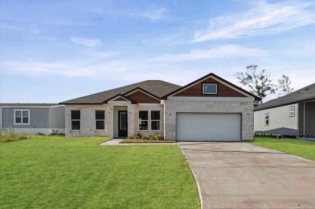 Welcome to this charming single-story home offering 4 bedrooms and 2 baths, designed for comfort and style. Step inside to discover high cathedral ceilings that create a bright, open feel, along with beautiful wood accents that add warmth throughout. The spacious kitchen is equipped with abundant cabinetry, a center island, and plenty of counter space. Enjoy laminate and tile flooring in every room—no carpet to worry about. The large primary suite features soaring ceilings, a luxurious bath with a walk-in shower, soaking tub, and a double-sink vanity. Situated on a generous lot, the property boasts a covered patio with wood-accented ceilings, plus a long driveway for ample parking. This home is not in a flood zone, offers a low tax rate, and comes with no HOA restrictions.