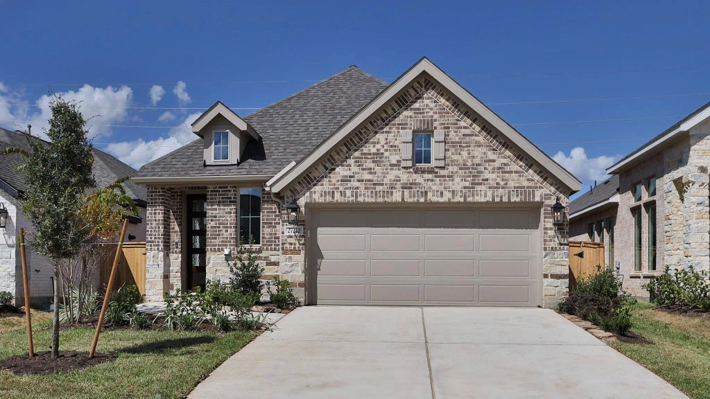Porch opens to entry with 10-foot ceiling, utility room and mud room. Open family room with three large windows extends to the kitchen and dining area. Island kitchen offers built-in seating space, 5-burner gas cooktop and corner walk-in pantry. Secluded primary suite features large bedroom, dual vanities, glass enclosed shower and a walk-in closet. Secondary bedrooms with walk-in closets, additional bathrooms and two linen closets complete this design. Covered backyard patio. Two-car garage.