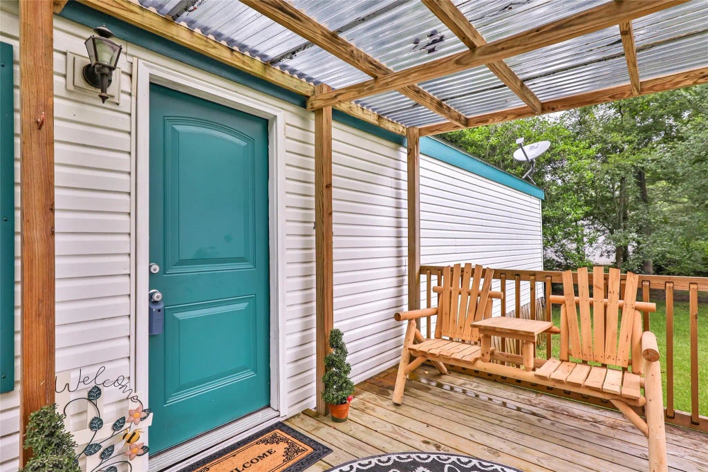 Charming mobile home in Dayton ISD on a spacious .55 acre lot with no restrictions. This country retreat features a covered porch for relaxation, a shed in the backyard, and updated interiors with vinyl plank flooring, new stainless appliances, and butcher block countertops in the kitchen. With 3 bedrooms and 2 baths, this cozy home is conveniently located near Highway 90 and 146 for easy access to Mont Belvieu, Dayton, and Baytown for entertainment and shopping. Don't miss out on this peaceful oasis!