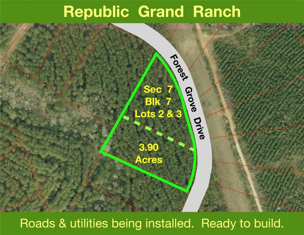 TWO COMBINED PARCELS > 3.90 ACRES TOTAL > HEAVILY WOODED AND RELATIVELY FLAT FOR EASY BUILD > Located on the outskirts of Willis with great schools and nearby shopping. Large lot wooded community with gentle rolling hills. Peaceful privacy. You will never be crowded by neighbors. Republic Grand Ranch is a large lot, wooded community in the rolling hills. Country lifestyle for your custom forever home. Trees, paved roads, water, HIGH SPEED fiber optic internet & underground power through out. Covered pavilions, parks, ponds, playgrounds, BBQ areas. Minutes from shopping, dining, schools, hospitals, and entertainment. Low taxes - No MUD tax. Average elevation is 400’ ASL. Plenty of greenspace and trails for hiking, biking and horseback riding. Come home to Republic Grand Ranch!