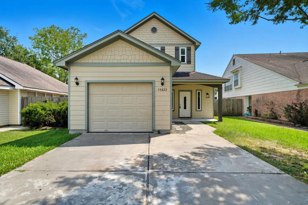Freshly updated and painted, this 3 bedroom/2.5 bath house is just three doors away from the community park and has no back neighbors. Built in 2015, it has an open floor plan with new modern light fixtures and fans. Large living/dining area with open kitchen and breakfast bar. Kitchen includes loads of cabinets, granite counters, stainless appliances, and a full pantry. Downstairs primary suite includes wood laminate floors and spacious private bathroom with double sinks, and large walk-in closet for tons for storage. A powder room in the hallway is perfect for guests. Upstairs includes 2 secondary bedrooms with new carpet, full bath and generous closets. Outside is a covered patio and plenty of backyard for gardening or play. Great location in West Houston, close to Energy Corridor, City Centre, Beltway 8, 290, and I-10.