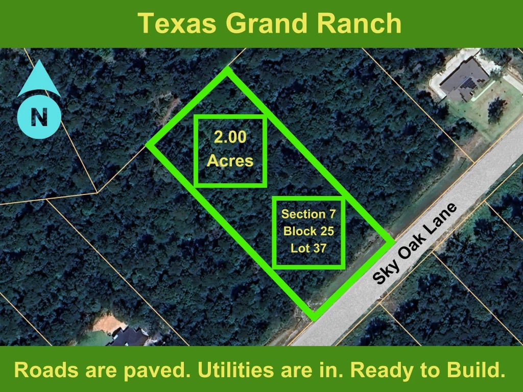 2 ACRES > INTERIOR QUIET PARCEL > MATURE TREES > NO PIPELINE, VERY SMALL DRAINAGE EASEMENT > EASY BUILD SITE > Ready for peace & quiet & privacy? Ready to build. Start building whenever you want. Choose your own builder. EZ access to I-45. Texas Grand Ranch is a large lot, wooded community in the rolling hills. Country lifestyle for your custom forever home. Mature trees, paved roads, water & HIGH SPEED fiber optic internet. Covered pavilions, parks, ponds, playgrounds, BBQ areas. Minutes from shopping, dining, schools, hospitals, and entertainment. Low taxes - No MUD tax. HIGH & DRY - Average elevation is 325’ ASL. Surrounded by Nat’l Forest (161,508 acres) & State Park (2,083 acres) with 100’s of miles of hiking, biking and horseback riding – boat launches & beaches. Come home to Texas Grand Ranch.