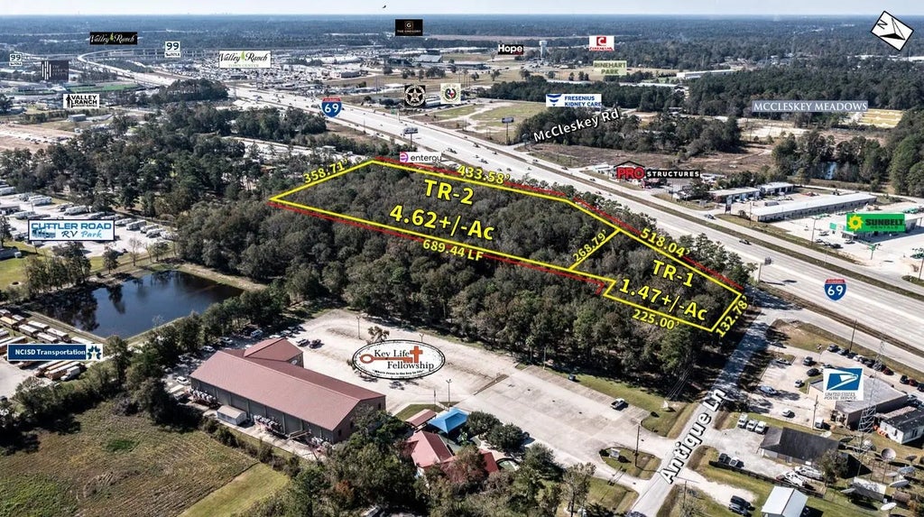 6.09+/-Ac wooded land on SEC Hwy 59 & Antique Ln. Property offers excellent frontage & exposure to heavily traveled I-69 (Hwy 59) in rapidly growing E Montgomery County. Across from USPS and adjacent Entergy. TXDOT approved curb cut, near several master planned subdivisions with easy access to FM 1485 & Loop 494. Grand Pkwy (Hwy 99) & Valley Ranch Town Center within 1 mile and Downtown Houston & IAH Bush Airport – 30 Min. Property can be sold separately or together. Contact Agent for additional details.