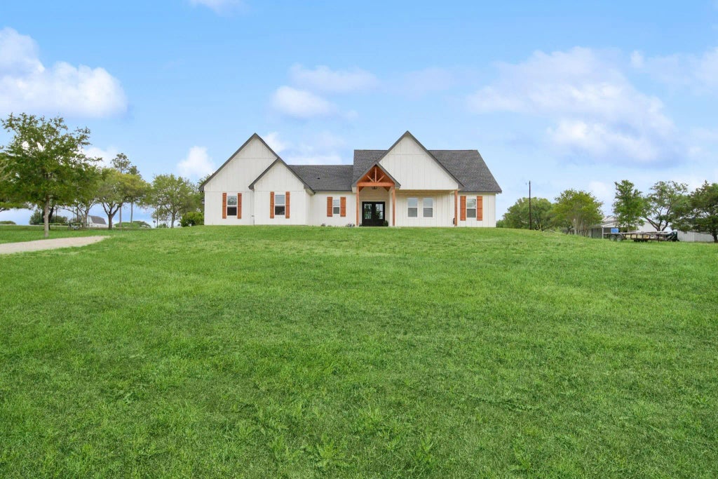 Nestled in the back of the desirable Bluebonnet Hills neighborhood is this new, custom-built home boasting 2,750 sq ft with 5 bedrooms and 3 bathrooms on a beautifully treed 1.47 acres. The vaulted ceiling highlights the open living, kitchen, and dining area, while several windows showcase the views of the greenery outside. There is plenty of room for everyone with the 5 bedrooms, including an upstairs room with vaulted ceilings. The large master bedroom is a true retreat with the marble-tiled accent wall, glass-enclosed shower, and chandelier over a spacious soaking tub in the bathroom suite. Located off of the modern and elegant kitchen is a massive, walk-in butler's pantry offering storage and meal prep out of sight. Future owners will also enjoy the large utility room with a sink and space for an additional refrigerator. This spacious and newly-built home on acreage in Bluebonnet Hills is turn-key and ready for new owners to make it their own. Schedule your private showing today!