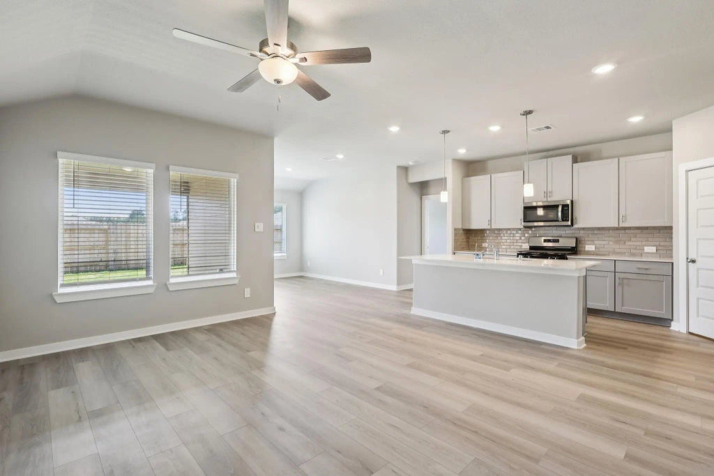 Brand new, energy-efficient home available NOW! Stock up on everyone's favorites with plenty of room in the walk-in pantry. White cabinets with white quartz countertops and grey hexagon backsplash, light brown EVP flooring and multi-tone carpet. Sundance Cove will have the kids enjoying the future trails, resort-style pool and recreation center. When not at home, indulge in the lake lifestyle with easy access to all the fun at nearby Lake Houston. You won’t need to venture far to major employment centers, shopping, dining, and entertainment. We also build each home with innovative, energy-efficient features that cut down on utility bills so you can afford to do more living.* Each of our homes is built with innovative, energy-efficient features designed to help you enjoy more savings, better health, real comfort and peace of mind.