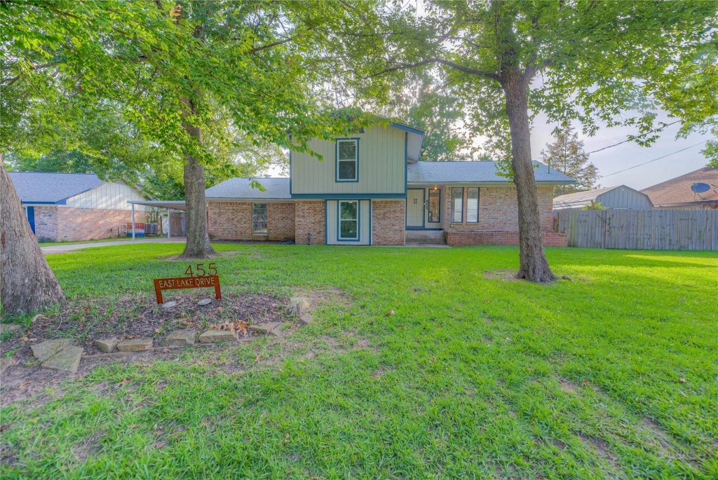 Set on a peaceful private lake in Lakeside Village, this charming split-level waterfront home has seen many upgrades but still offers a few opportunities to make it your own. Recent improvements include new tile flooring, fresh interior paint, updated light fixtures, and custom tile shower surrounds. The layout features 3 bedrooms and 2 bathrooms, plus a spacious den with a wood-burning fireplace and walk-in closet—perfect for use as a fourth bedroom, or second living area. Just off the kitchen, you’ll also find a flexible bonus space ideal for a butler’s pantry, coffee bar, or extra storage. Step outside and enjoy true lakefront living with a private concrete boat ramp and concrete bulkhead, giving you easy access to the water for fishing, boating, or simply relaxing by the water. Whether you’re looking for a full-time residence, weekend escape, or a property you can still personalize, this one offers comfort, flexibility, and scenic views in a well-established waterfront community