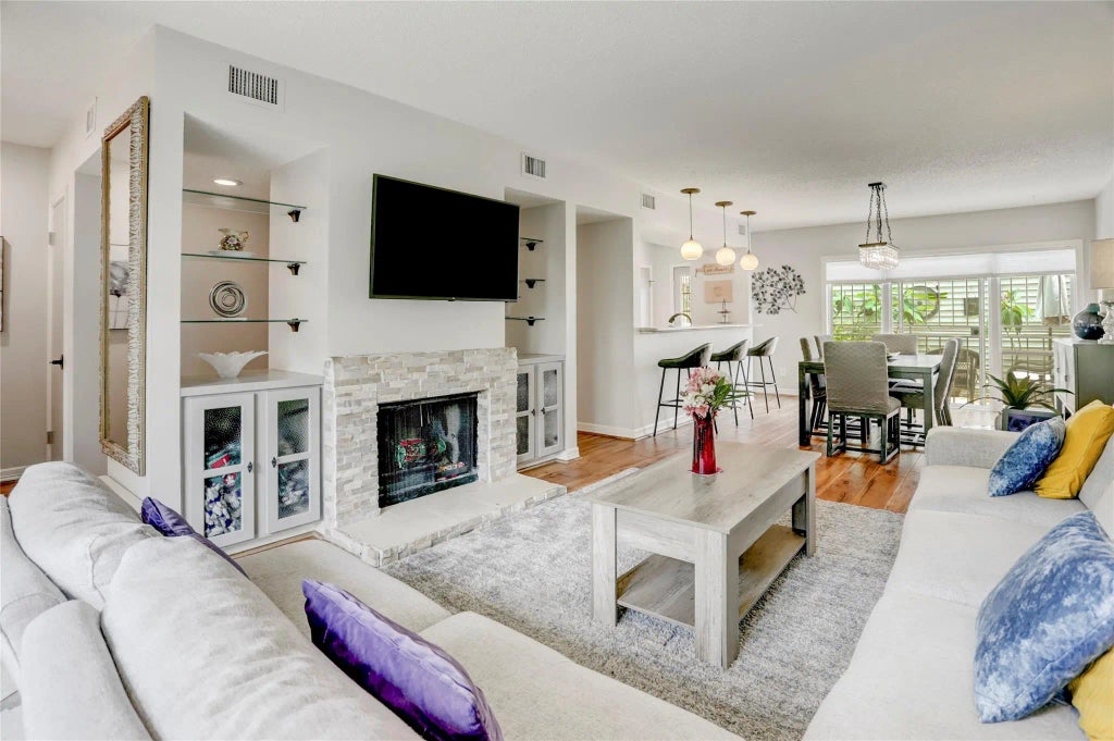 NOT a Condo. Stunning remodeled townhome in desirable community. Well-appointed hidden gem in heart of Galleria area, tucked away in quiet peaceful courtyard. Light-filled spaces. Lots of big dbl-paned windows invite tranquility to this enviable home. Upon entry, you will immediately notice how meticulously maintained & updated every detail is thru-out. Wonderful open floorplan. Livingroom w/Stone surround woodburning fireplace flanked by floating glass shelves & glass front cabinets. Abundant private outdoor patio space in front & back provide many options for relaxation & recreation! Gorgeous remodeled kitchen w/Sleek granite counters, white classic subway tile backsplash, stainless steel appliances, & lots of shaker style cabinets w/Upgraded hardware. Breakfast bar w/Cool pendant lights. 2 pantry closets. Luxurious primary suite w/High ceiling. Thoughtfully remodeled bathrms. Generous closet space thru-out. HVAC-2025. PEX pipes in attic. Unbeatable PRIME Location near shops&dining!