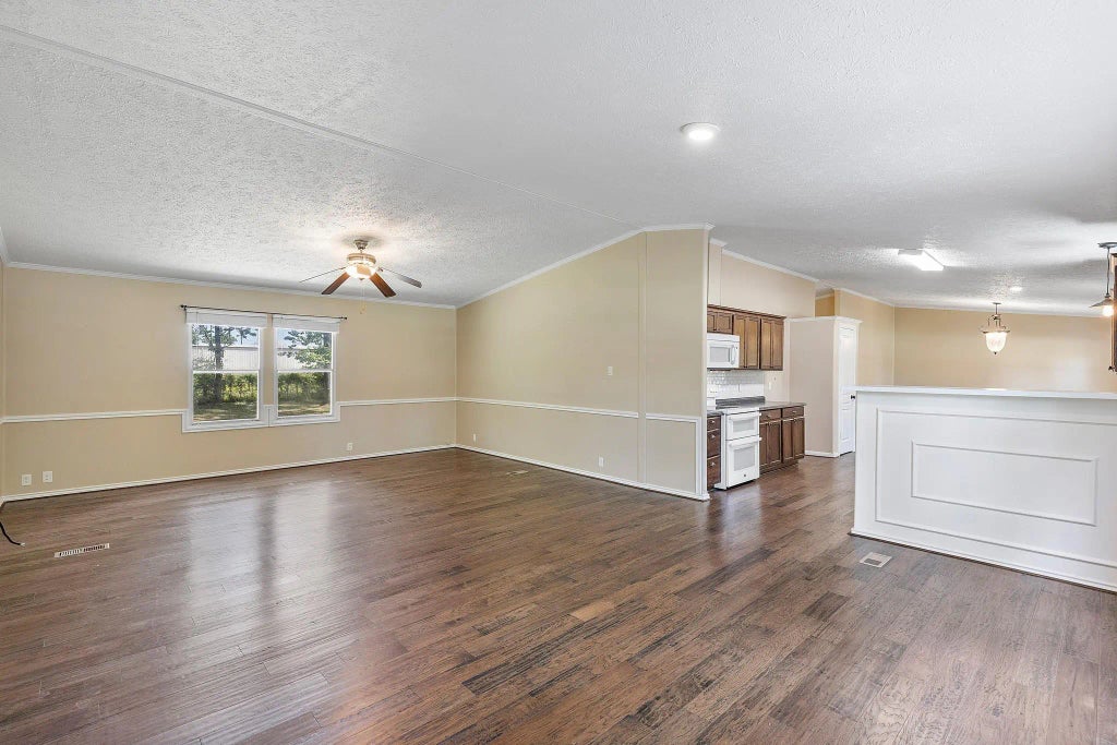 Spacious 1,836 sq. ft. home featuring four bedrooms and two baths, nestled on a wooded half-acre lot. This well-maintained property boasts numerous updates, including elegant wood flooring, carpet, laminate, 2-inch blinds, modern light fixtures, updated wood cabinets and beautifully remodeled bathrooms. The generously sized primary bedroom includes a stylishly renovated bathroom with a walk-in shower, plus a versatile bonus room—perfect for a home office, nursery, or gaming space. The open-concept layout provides an expansive living area that flows seamlessly between the kitchen, dining, and living rooms. Enjoy the peace and privacy of a half-acre lot with plenty of space to relax and unwind. Super low Tax rate makes for a lower payment.